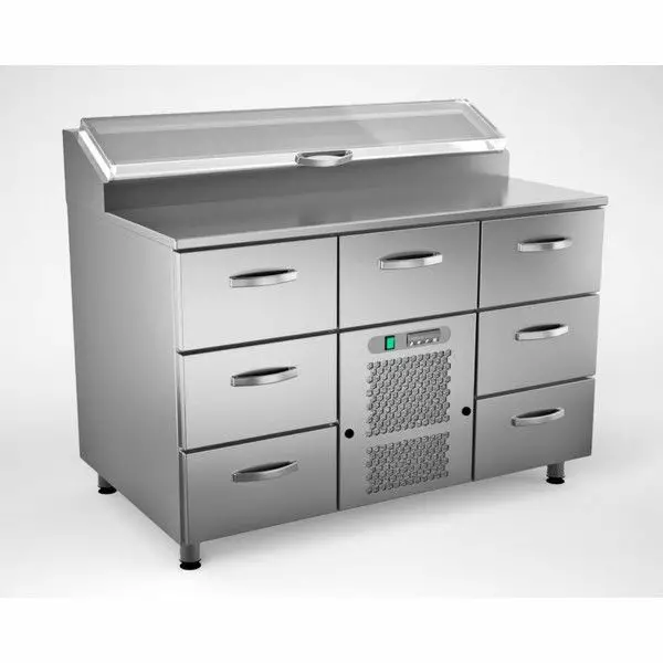 - Työpinnan takalaidassa on korotettu kylmäkaapin osa 1/6 GN-astioille.
