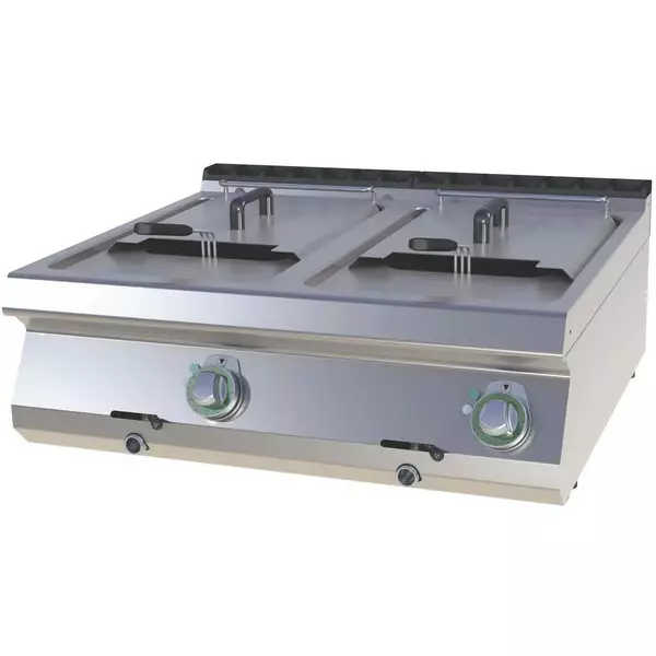 RM-Gastro rasvakeitin. 2x13 litan altaat Teho 25kW Jännite 400V Laitteen mitat L800xS730xK313